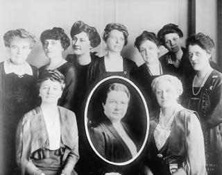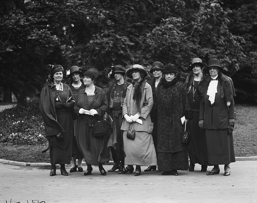 Early leaders of the National League of Women voters, including Maud Park, the first national president (front left) and Chapman Catt (front right). Circa 1920.