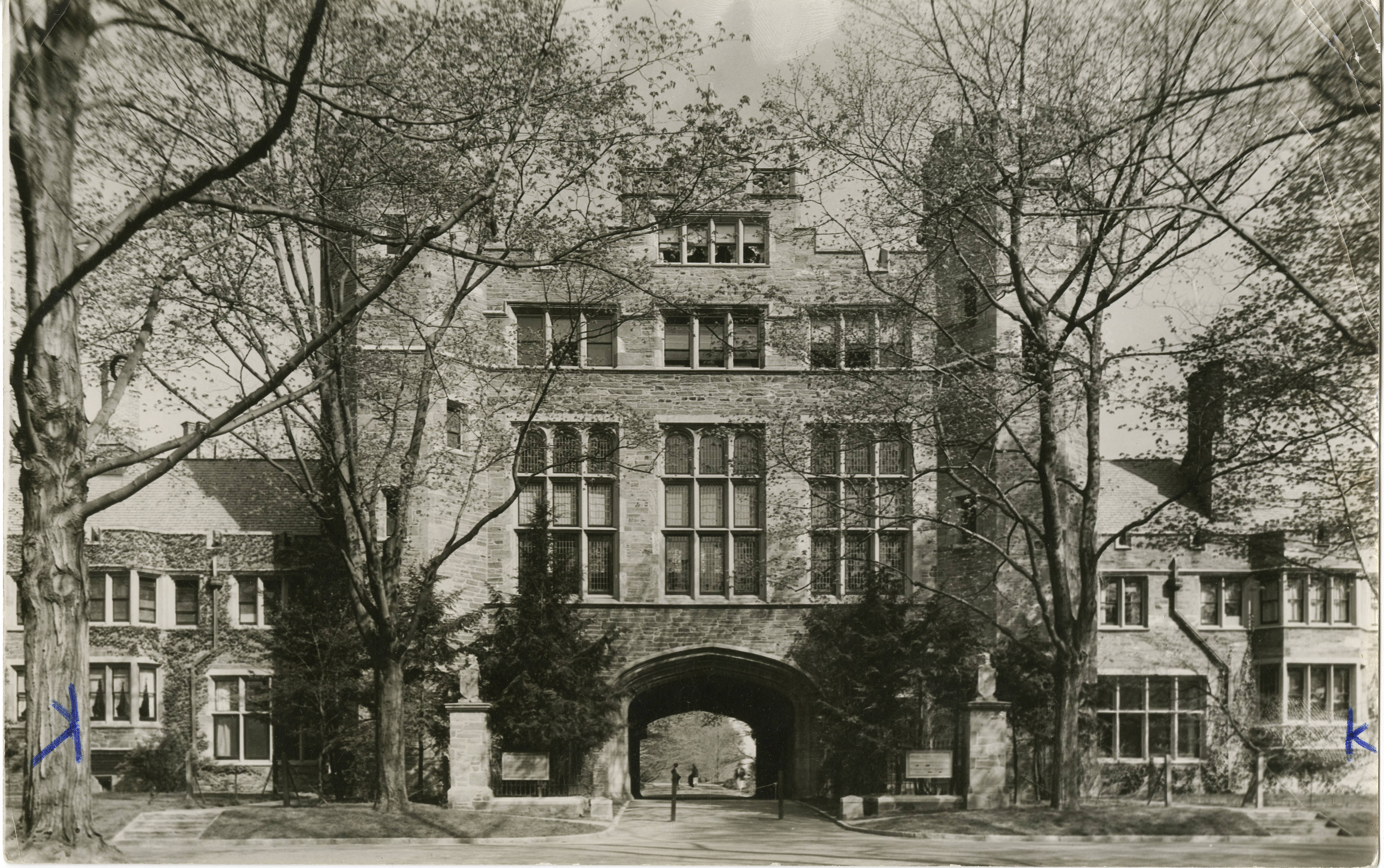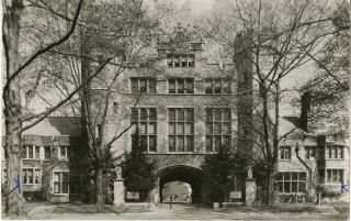 As Bryn Mawr’s first dean, M. Carey Thomas helped develop a college and graduate school for women modeled after the rigors of Johns Hopkins University. In 1894, she became Bryn Mawr's second president, a position she held until 1922. Thomas wanted buildings that carried no symbolic suggestions about the gender of the student body. An elitist (and racist), she admired the English universities Oxford and Cambridge and loved the theatrical style of Jacobean architecture. When Bryn Mawr began to build under her influence, it took form as quadrangles, one of the earliest and most elegant compositions of what has come to be called College Gothic.