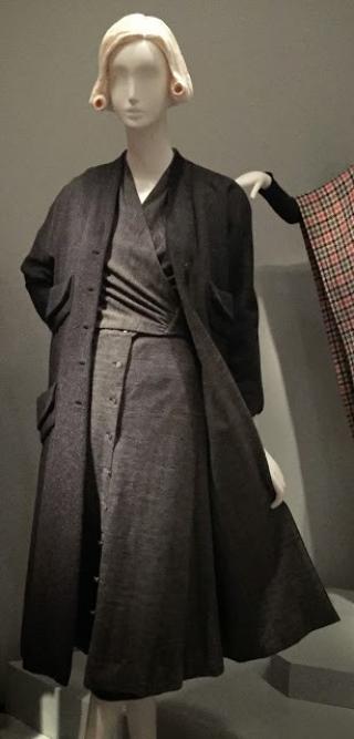 The “Weekend Wardrobe,” introduced in 1935, was a collection of coordinated garments that could be mixed and matched at will and easily packed for a weekend jaunt. The first Weekend Wardrobe included a collarless, Harris tweed jacket (inspired by one Maxwell saw Albert Einstein wearing at Princeton in 1935), another jersey jacket, pants and two skirts. Emblematic of her powers of “experience and observation,” Maxwell created the kind of coordinated, streamlined collection that she, or any woman, would find easy to take and wear on a short trip.