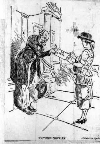 Thus, despite the best efforts of southern suffragists to present their movement as compatible with southern values, they had scant success. Prior to the ratification of the Nineteenth Amendment in 1920, women gained full enfranchisement in no southern state and partial suffrage in only four. Moreover, of the ten states that failed to ratify the Nineteenth Amendment, nine were south of the Mason-Dixon line.South. In addition, protection of white womanhood was a key element of white southern mens’ rationale for disfranchising black men they claimed would be inspired by political equality to aspire to social equality. When it appeared that southern suffragists could win the vote only by federal action and sought support for a woman suffrage amendment, evocation of Civil War references and rhetoric only increased. Politicians who had only recently adopted new policies to reverse the effect of the Fifteenth Amendment insisted that ratification of what became the Nineteenth Amendment was unthinkable. It was, they proclaimed, another federal assault on states’ rights—the fundamental principle, for which Confederates had fought and died during the Civil war. Any “true” son or daughter of the South, they insisted, would recognize that fact.