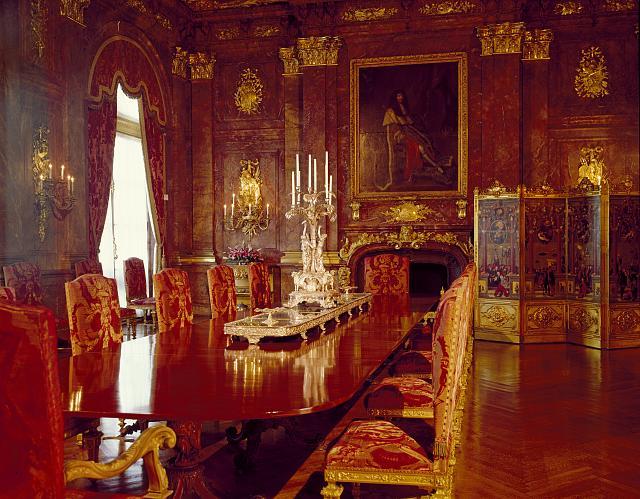 The dining room of Gilded Age mansion Marble House in Rhode Island.