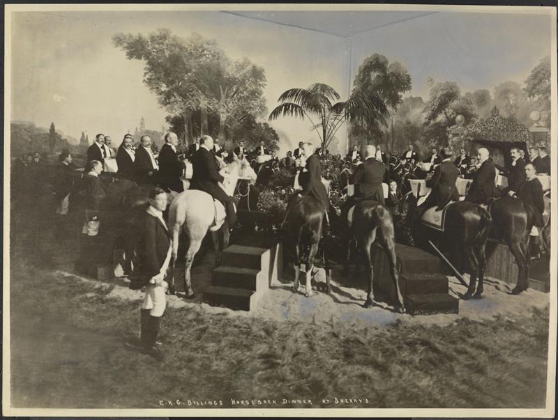 Although posh dinners usually took place inside elegant homes and restaurants, there are some notable instances of extreme dining experiences that took place in the unlikeliest of places–like sitting on horseback. Yes. Horseback. In one of the most ostentatious displays of Gilded Age excess and decadence, millionaire C.K.G Billing’s combined his love of horses and gastronomy into a lavish dinner on horseback with 36 of his closest male friends. The dinner took place on March 28, 1903 at Sherry’s, New York’s ritziest restaurant of the day on Fifth Avenue and 44th Street. The horses even got a fine meal out of it and were each fed an individual bag of oats! Total cost of the extreme meal: $50,000.
