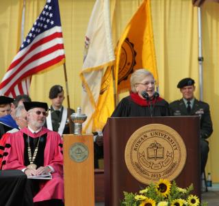 Anne Klein speaking at the Rowen University graduate commencement ceremony in 2012.