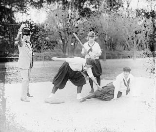 While baseball is largely a male dominated sport today, the first team at any level to be paid to play baseball was an all-female African American team, the Philadelphia Dolly Vardens. The team played in long-sleeved calico dresses, high button shoes, and red jockey caps. The Dolly Vardens were paid to play baseball two years before the first men’s team, the Cincinnati Red Stockings, formed in 1869. After Amelia Bloomer designed her famous Turkish-style pants, women donned the new clothes, took to the ball park as “Bloomer Girls,” and traveled the country competing against both male and female teams. Numerous women earned their living playing baseball from the 1890s until the early 1930s. Yet public opinion still reflected an entrenched belief that baseball was far too dangerous and strenuous for the “delicate” female constitution.