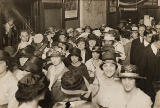Women in line in New York waiting to apply for enlistment into the Marine Corps.