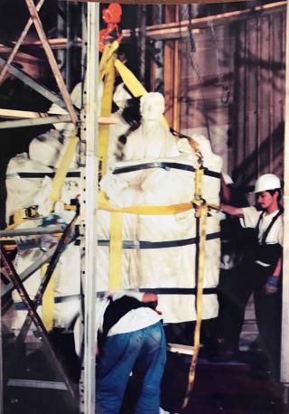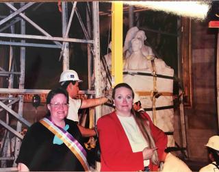 Joan Wages: All of us who worked on the campaign showed up early on Saturday morning—very excited. But the day dragged on because the construction crew could not figure out how to lift the seven tons of marble up onto the Rotunda level. By early evening, they quit for the day. The next morning, we arrived back at the Capitol bright and early before the tourists were allowed in. They had figured out the way to lift it and by mid-morning the statue moved into the Rotunda. Saturday had been rainy and overcast. When the statue came in, the sun broke through and everyone cheered.