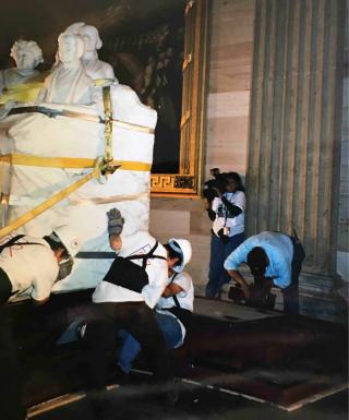 Discussion went round and round, and finally we stated emphatically that this statue was the one the suffragists gave us. This statue is the one through which all women in America were dishonored when it was shoved in the basement. So this statue had to be the one to come back up into the Rotunda to restore their honor—if only for a few years until a new statue could be commissioned to take its place.