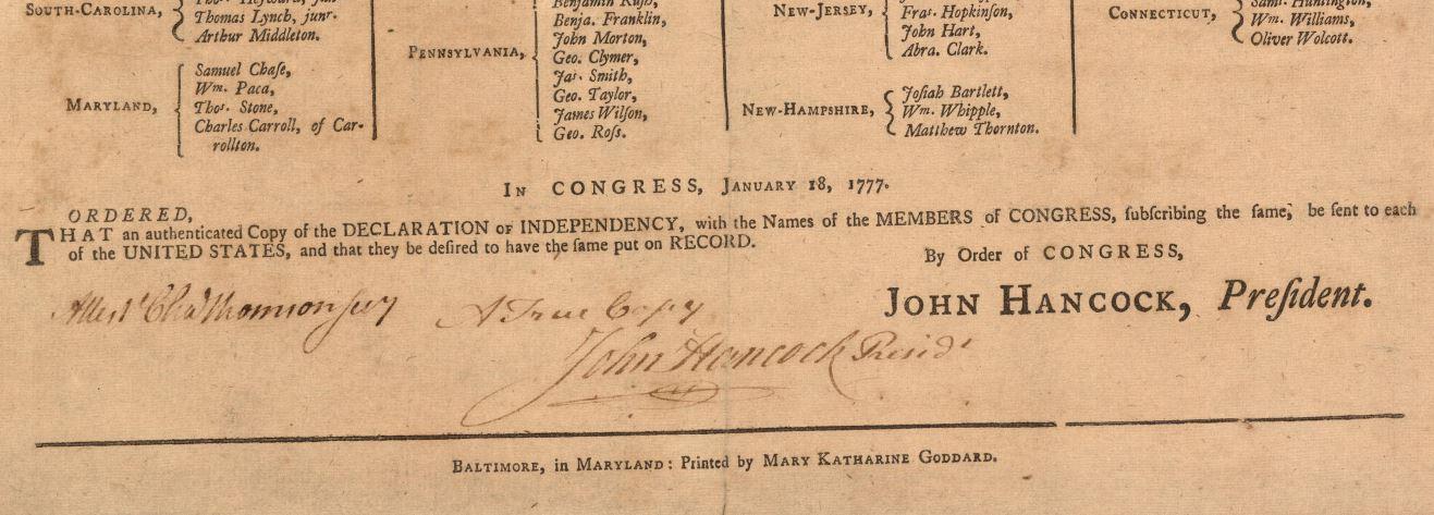 Mary Katherine Goddard's name at the bottom of the Declaration of Independence.