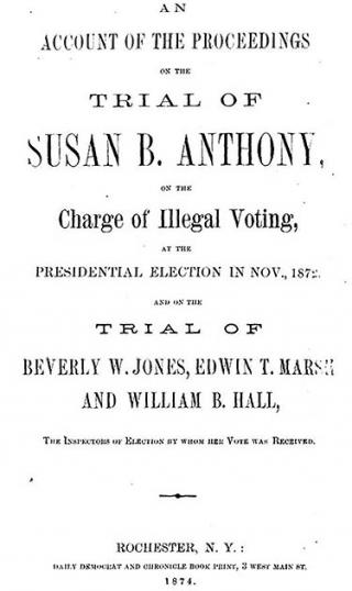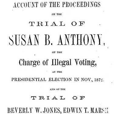 Anthony capitalized on her upcoming trial and went on a local speaking tour where one of her main points was, “Is it a Crime for a Citizen of the United States to Vote?” She believed that under the 14th Amendment no state could bar natural-born citizens, which included to Anthony, the right to vote. In June of 1873, Anthony was brought to trial. She was not allowed to testify herself, as the judge barred her saying “she is not a competent as a witness on her own behalf.” Her lawyer, Judge Selden, argued for her case, citing the 14th Amendment and calling the arrest gender discrimination.