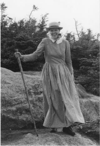 I do. I started writing a book about Mount Marcy, the tallest mountain in New York State at 5,344 feet, which isn’t enormous compared to other mountain ranges, but for out here it’s pretty tall. I was writing all about the history and as part of that I did a lot of research about the first women who climbed it, which no one had really investigated before. I found myself wondering "Well, what was it really like for them to climb in their long dresses and all of this kind of thing?" So I sewed a long dress and I climbed Mount Marcy in it. It wasn’t too cumbersome; I kind of enjoyed it, actually. I had read how they had pinned up their dresses a little bit when they were going up hills so they wouldn’t trip on the front of the dress. I did that and I found it to be very helpful. I did, however, wear modern boots because I have knee problems. I can’t imagine doing it in the kind of shoes that they wore.