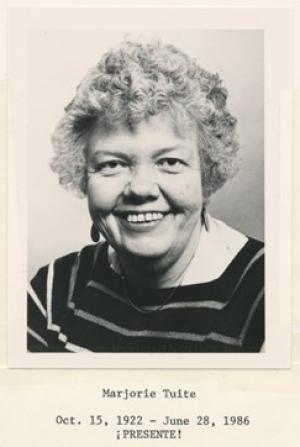 "Sister Marjorie Tuite, a prominent Roman Catholic feminist and...," United Press International, June 30, 1986.