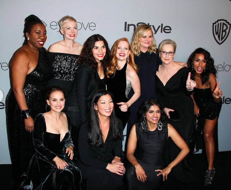TIME’S UP also launched several initiatives to ensure gender parity and workplace safety in various industries. The TIME’S UP Legal Defense Fund™ was established to help survivors, especially women of color and low-income women, get connected to lawyers and resources. This network has over 800 lawyers working to fight for women’s causes. In addition, TIME’S UP Now was established to prevent future acts of harassment and discrimination. In an effort to raise awareness for the cause, many attendees of the 75th Golden Globe Awards wore black with #MeToo and TIME’S UP pins to support the movement. A few activists including Tarana Burke and Mónica Ramírez (Board President of Alianza Nacional de Campesinas) were invited as guests of various actresses. Many other award shows followed suit including the 2018 Grammys and the 2018 BAFTA Film Awards in London.