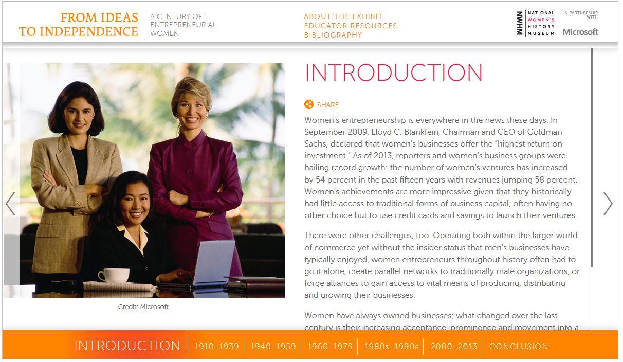 From Ideas to Independence A Century of Entrepreneurial Women January 30, 2018 A Century of Entrepreneurial Women Visit A Century of Entrepreneurial Women
