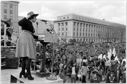 Bella Abzug emerged as a symbol of the Women’s Rights movement. Elected to the House in 1971, she ran on an antiwar and pro–feminist platform. She wrote the first version of the Equal Credit Opportunity Act, which prohibited discrimination against women by banks in lending. She also introduced groundbreaking legislation aimed at increasing the rights of lesbians and gays.