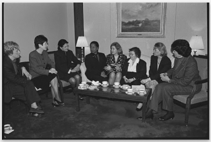 Women senators seated around a coffee table / Library of Congress (Jan 1997)