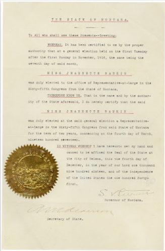 Credential of Jeannette Rankin / National Archi... (Dec 4, 1916)