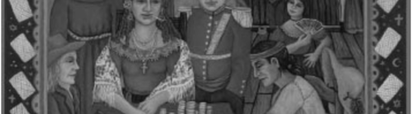 A symbolic Nuevo Mexicana who benefitted from these rights was La Tules or Doña Gertrudis Barceló (1800-1850). Born in Sonora, Mexico, her family moved to the northern part of New Mexico after Mexico gained independence from Spain. Barceló gained status as a wealthy business owner through trade deals, investments, and gambling. She capitalized on the influx of Euro-Americans on the Santa Fe Trail before and during the Mexican-American War with her “Sala,” a local gambling saloon where the card game of Spanish Monte was played. Brought first from Spain to Mexico, the game of Monte gained popularity in the United States when troops introduced the practice of it during and after the War.