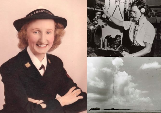 In 1943, a group of SPAR women was chosen to take over a LORAN station in Chatham, Massachusetts. Short for long-range navigation, LORAN was a navigation system made possible through the use of low-frequency radio waves, which allowed passing Allied ships to geolocate themselves accurately. This burgeoning technology was to be kept secret, and the eleven women who were chosen to operate the station could not speak about their work to anyone. Under the guidance of Lieutenant JG Vera Hamerschlag, the Chatham LORAN Station's Unit 21 was the only all-female military unit in the world.Unit 21 made Coast Guard history when it was ruled that its enlisted SPARs could give orders to male seamen on passing ships as long as their own commanding officers were male. This rule effectively altered the dynamic of women's roles and power in the military. SPAR Radiomen, like Elfie Larkin, and Radio Technicians, like Selma Hoffer, held the rates deemed most applicable to the mission.Left to right: Radioman Elfie Larkin and Radio Technician Selma Hoffer. A small and select group of women in these rates served at LORAN stations in places like Chatham, Massachusetts (United States Coast Guard, c. 1942); LORAN tower station on Sand Island in Johnston Atoll provides a visual example of the LORAN tower equipment (Unknown Creator, 1963)