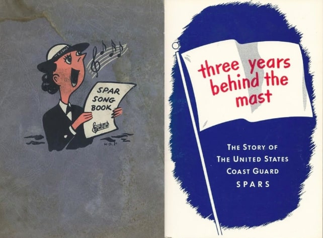During the war, SPAR publications served to keep the women focused on their work and their energy and patriotism high. Like in all military branches during WWII, maintaining morale was an essential aspect of daily life.With songs like “The Girl of the Year is a SPAR” and “Women of the Sea,” the SPAR Song Book provided lyrics and memorable music for women to sing and was given to both cadets and enlisted recruits alike. These songs could be memorized and sung anytime a rise in spirits was needed.With news of the imminent demobilization of the women's reserve, a few women wrote a book to illuminate what life was like for their ilk in the Coast Guard and to keep these stories from being forgotten.In Three Years Behind the Mast, a title alluding to Richard Henry Dana Jr's 1840 sea-faring novel, Two Years Before the Mast, authors and service members Mary C. Lyne and Kay Arthur recounted the experiences of their sister SPARs with the hopes of serving as a written record of their three years of service.The book traces a SPAR's life from enlistment to training school to filling her rate on the job and includes jargon utilized in the service in addition to a history of the Coast Guard in conflict.Left to right: Spar Song Book (United States Coast Guard, c. 1942); Three Years Behind the Mast (United States Coast Guard, 1946)