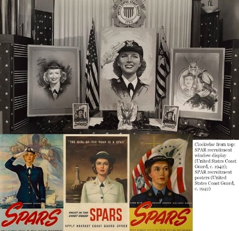 Image Collage: SPAR recruitment window display and SPAR recruitment posters.circa 1942-1946