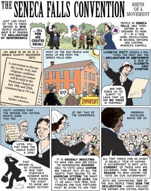 - Project the Seneca Falls Convention comix with the words included. Read the panels together as a class. Have students note details that they think are important in the What Does It Say portion of the graphic organizer.